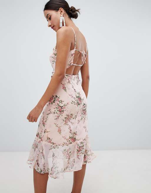 Boohoo Floral - Xenia tie detail flute sleeve swing dress.