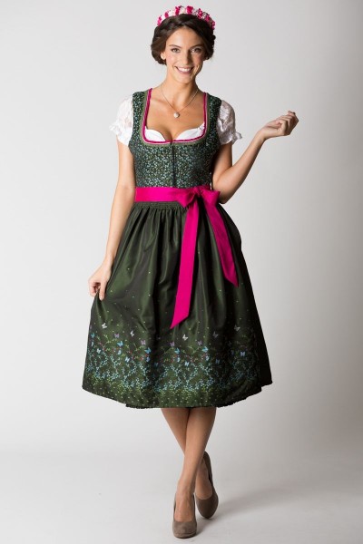 Midi Dirndl Grün : Das komplette dirndlkleid ist mit einem ornamentenmuster verziert.