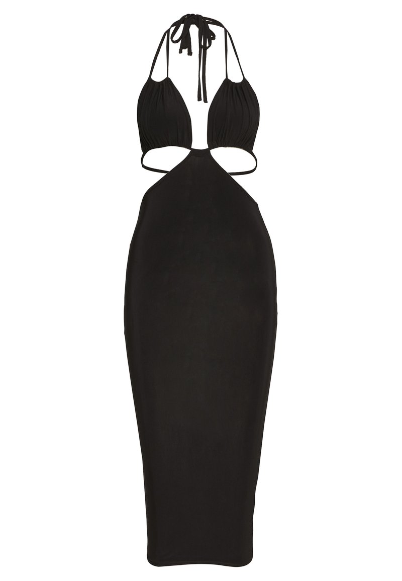 Slinky Black Dress : Young slim beautiful lady dressed in black slinky combi dress in.